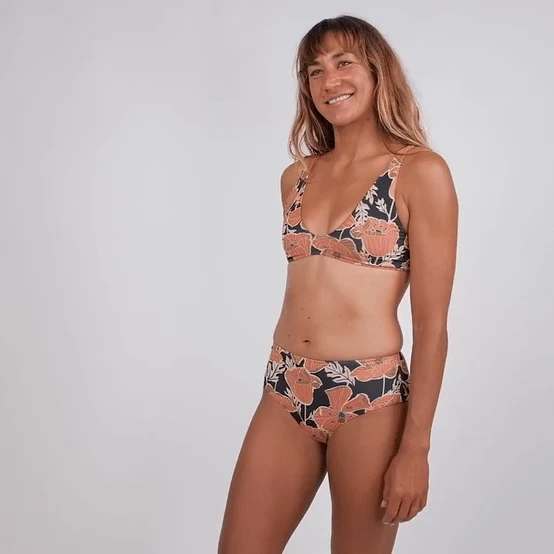 It’s all about balance. The Brasilia High Waist Bikini Bottom has a higher leg cut that visually lengthens your legs, balanced by a high waist to create a classy vintage silhouette.