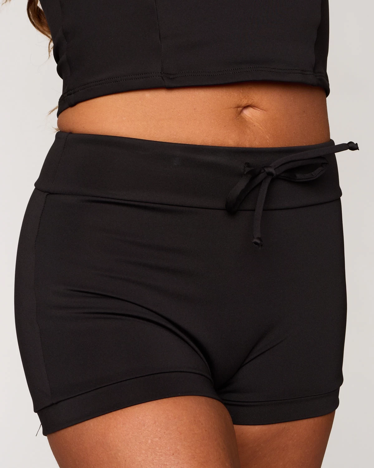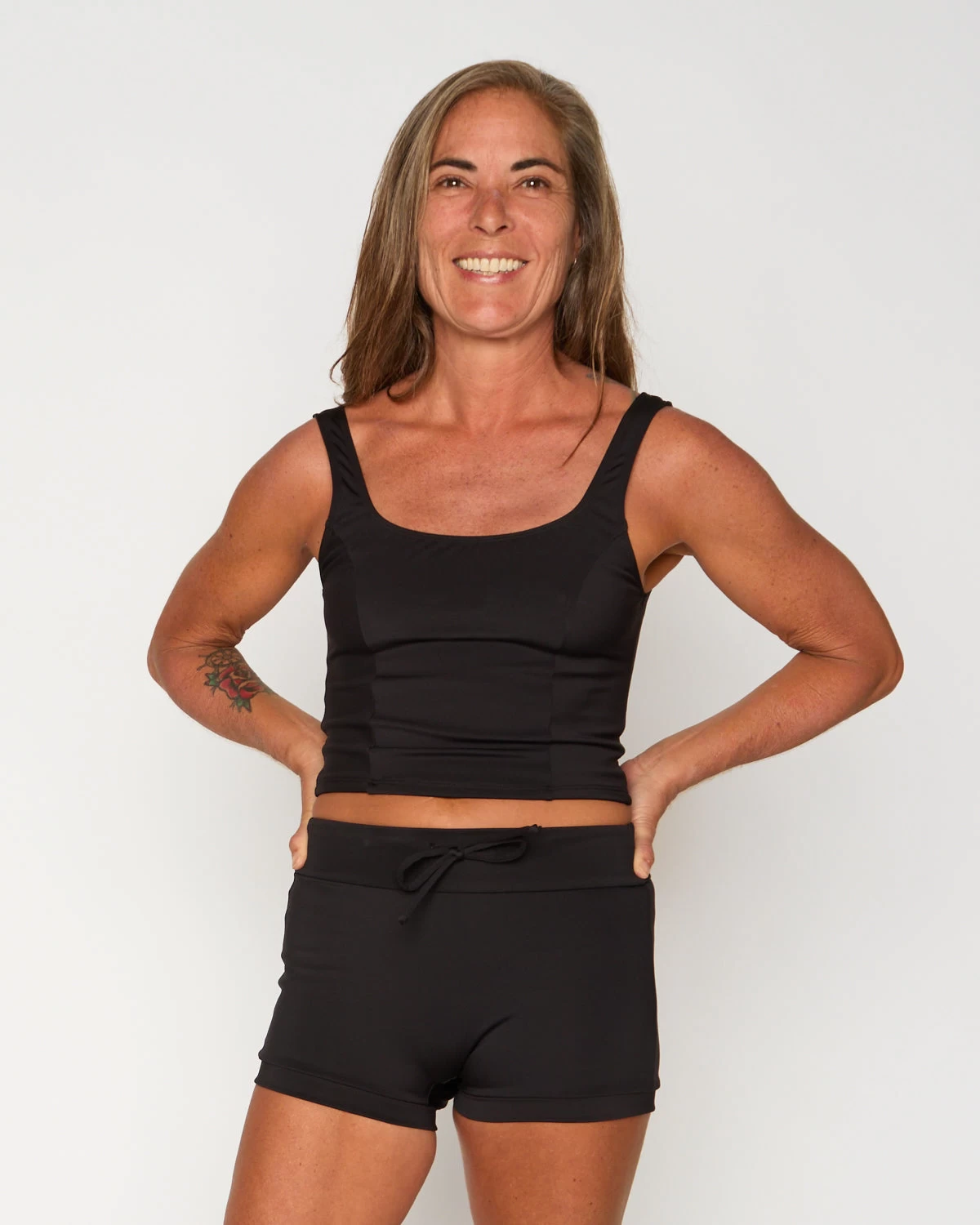 The Emma high-waist swim shorts are fuss-free comfort for grooving in watery worlds. These feminine mini shorts are designed without a back seam (no wedgies ever), folded bands at the leg openings that minimize shifting and a drawstring waist for extra secure fit.