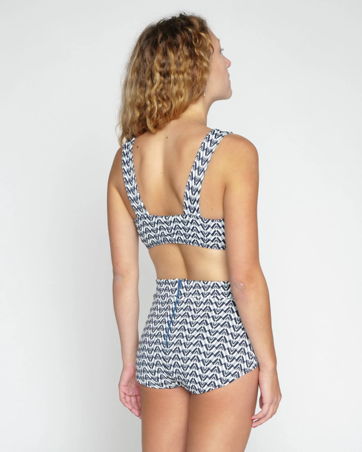 Under a striped beach umbrella or perched in trim, the Georgia Bikini Top radiates vintage femininity. With a delicate scoop neckline, fuller coverage, and supportive straps, this beauty is both comfortable and lovely.Â
