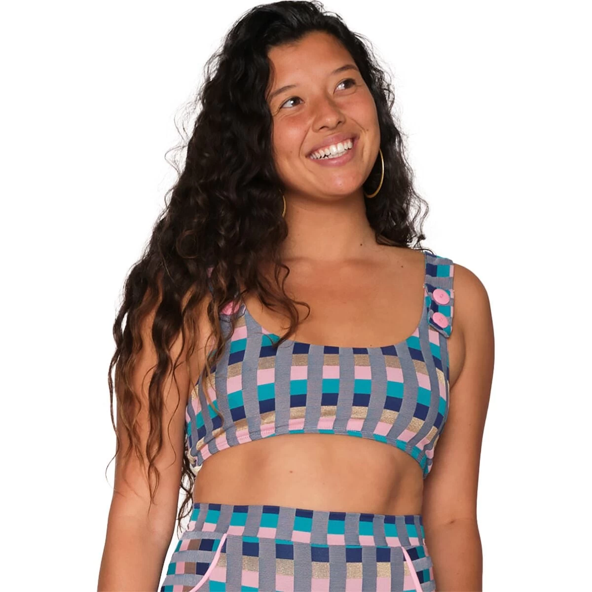 As much as sunshine, salty skin, and tangled hair are staples to our summer chapters, so is the Georgia Bikini Top. With two front buttons on each strap and a delicately swooped neckline, this top radiates a vintage style while offering support to confidently catch big waves. We love pairing it with high-waist bottoms and sun-kissed cheeks.
