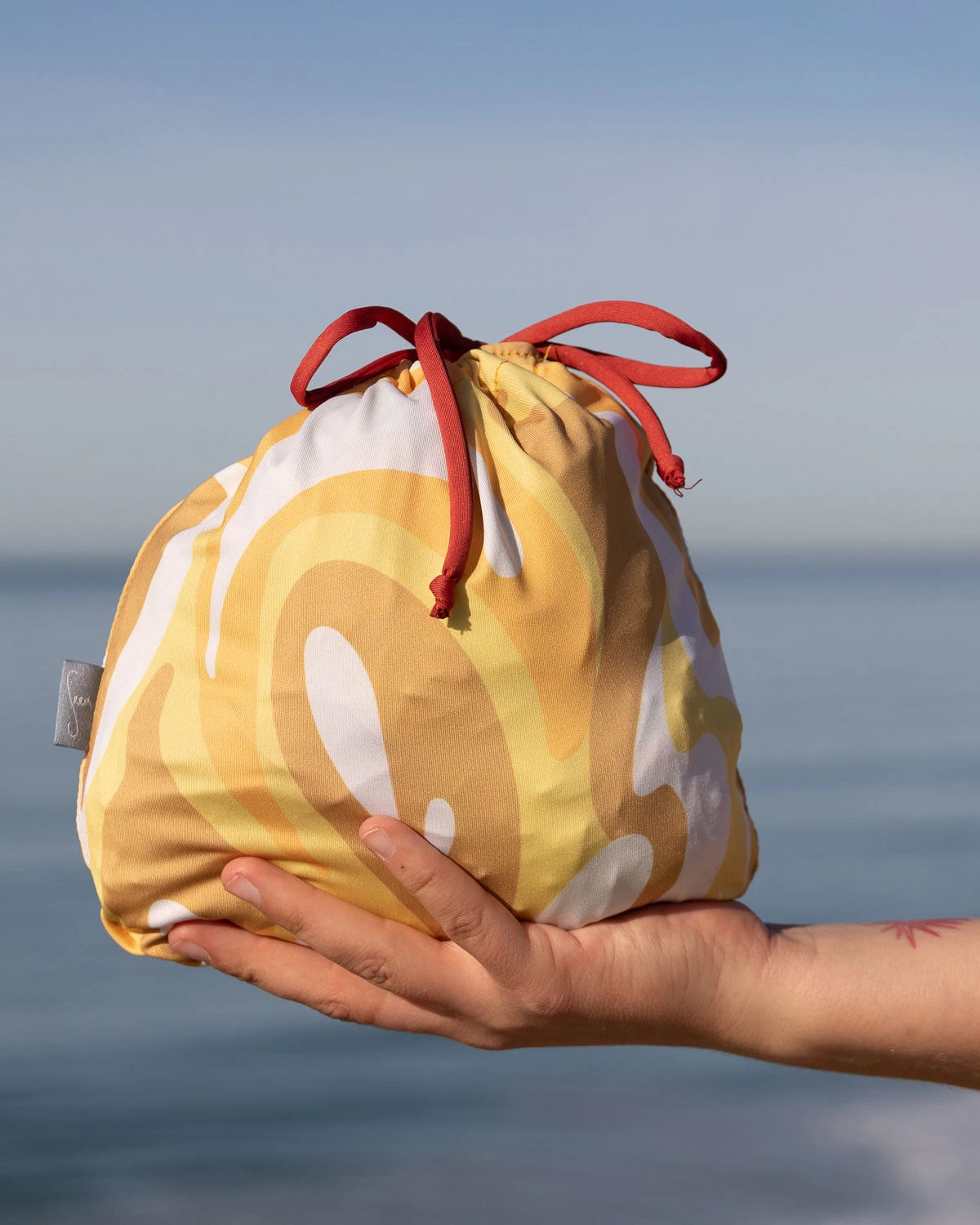 Because we are always looking for ways to reduce our waste, these recycled polyester/spandex board covers make use of fabric left over from our original swimsuit prints. Comes with a matching travel bag for storage when not in use.