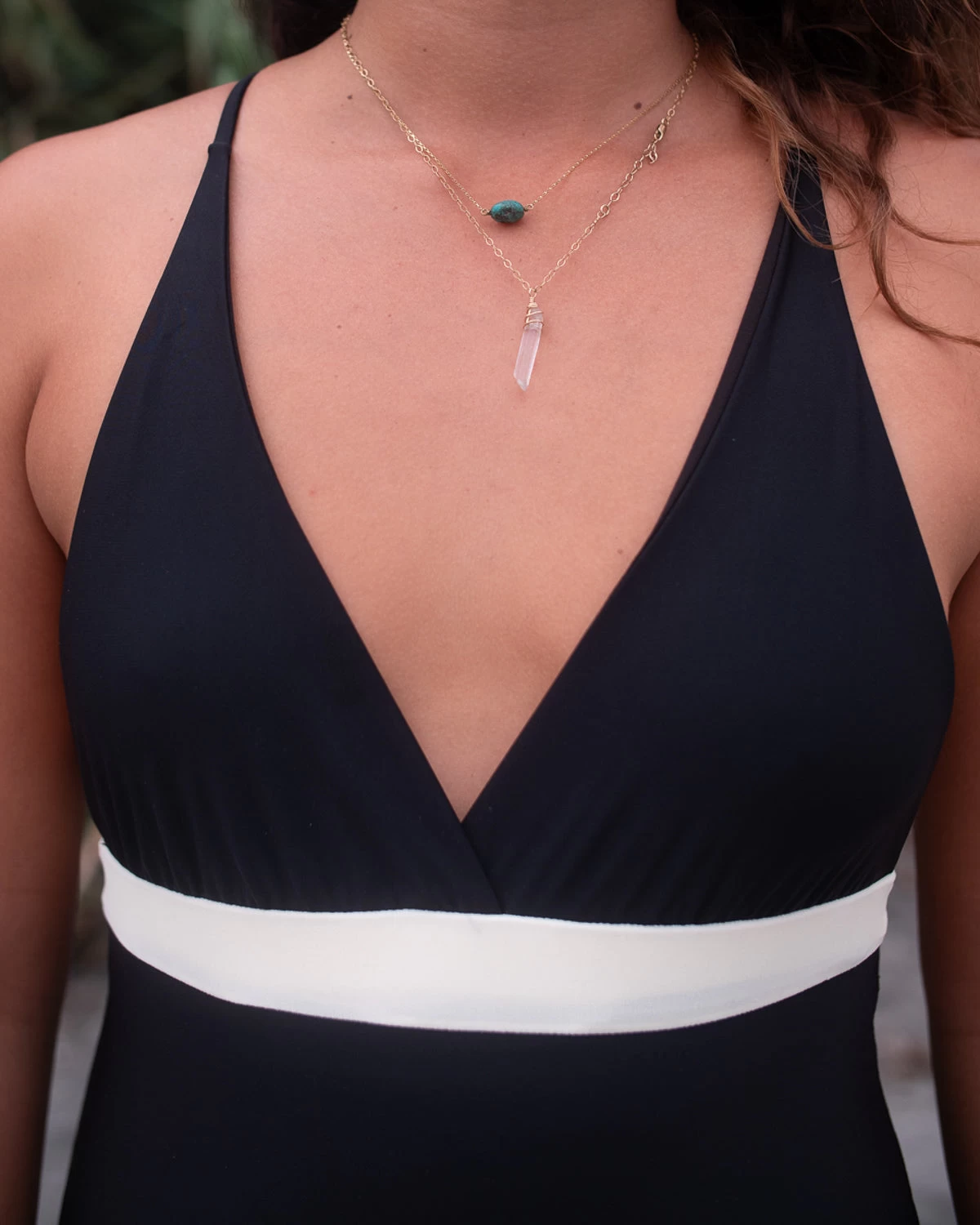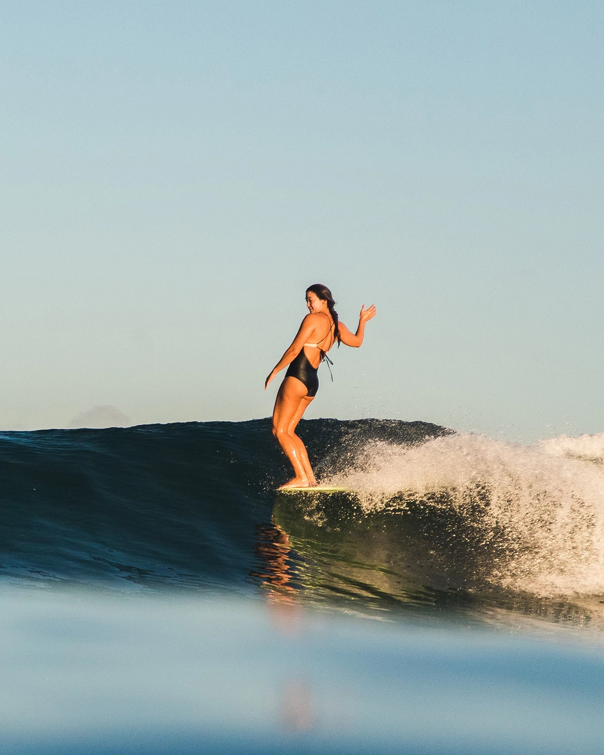 One-Piece glides past fading trends. Made for the playing in the waves, be supported with a cross back tie, and elegantly covered with a modest, yet feminine leg opening.